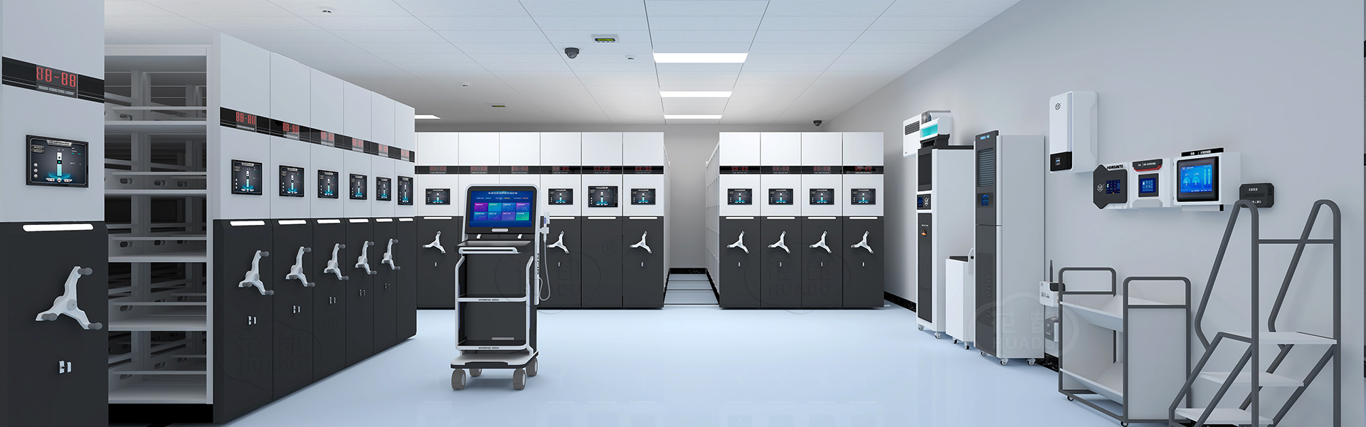智能密集架支持燈光定位、3D圖形化、RFID等多種檔案管理系統(tǒng)。